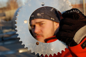 First batch of handmade custom SJT chainrings is here. Designed and made with love by Santtu_T, the all-around Helsinki Foot Down Champion and Master of Scary Industrial Machines. Tough and burly chainrings, that's for sure. Messenger Approved(TM) too, of course.